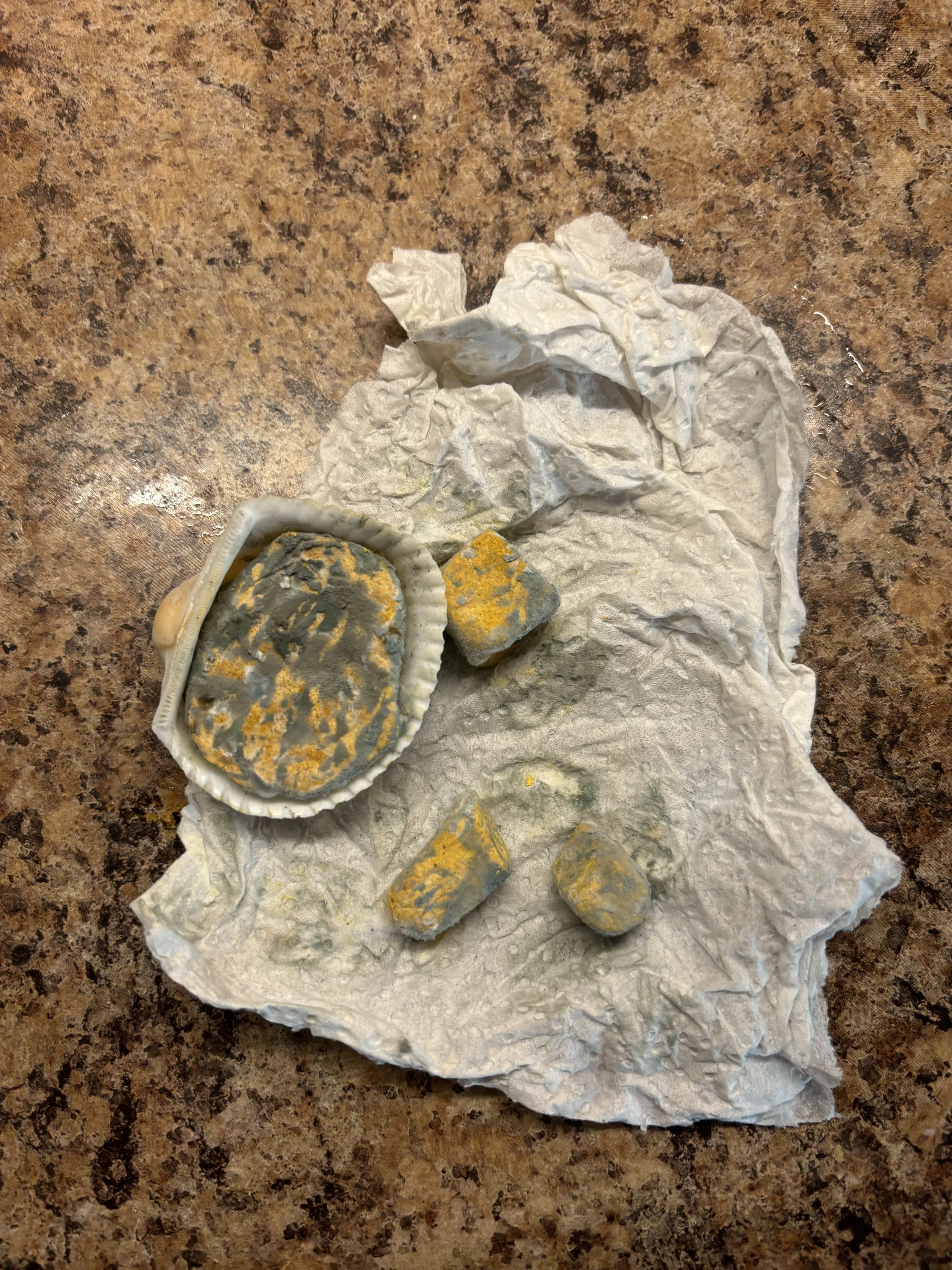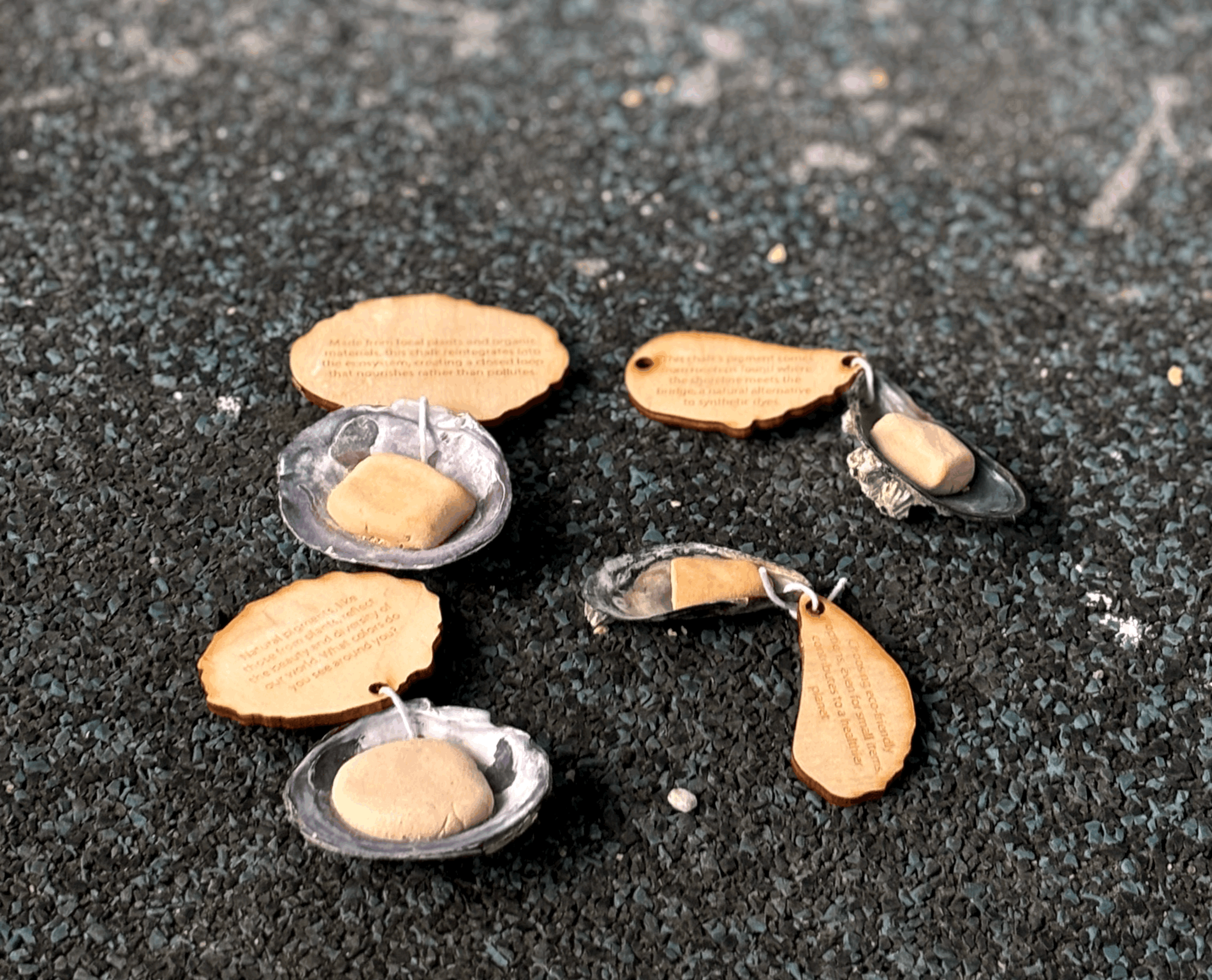 After experimenting with molds, ingredients and packaging I decided to keep the forms more organic and lightly shape them to chosen shells in which they would be placed. This creates not only individualizes each piece of chalk with none being the exact same but mirrors the symbiotic relationship between the land (rosehips) and the water (mussel shells)